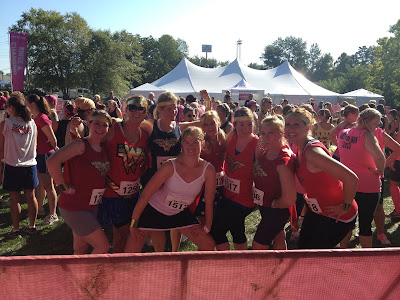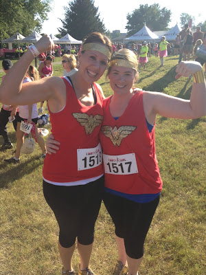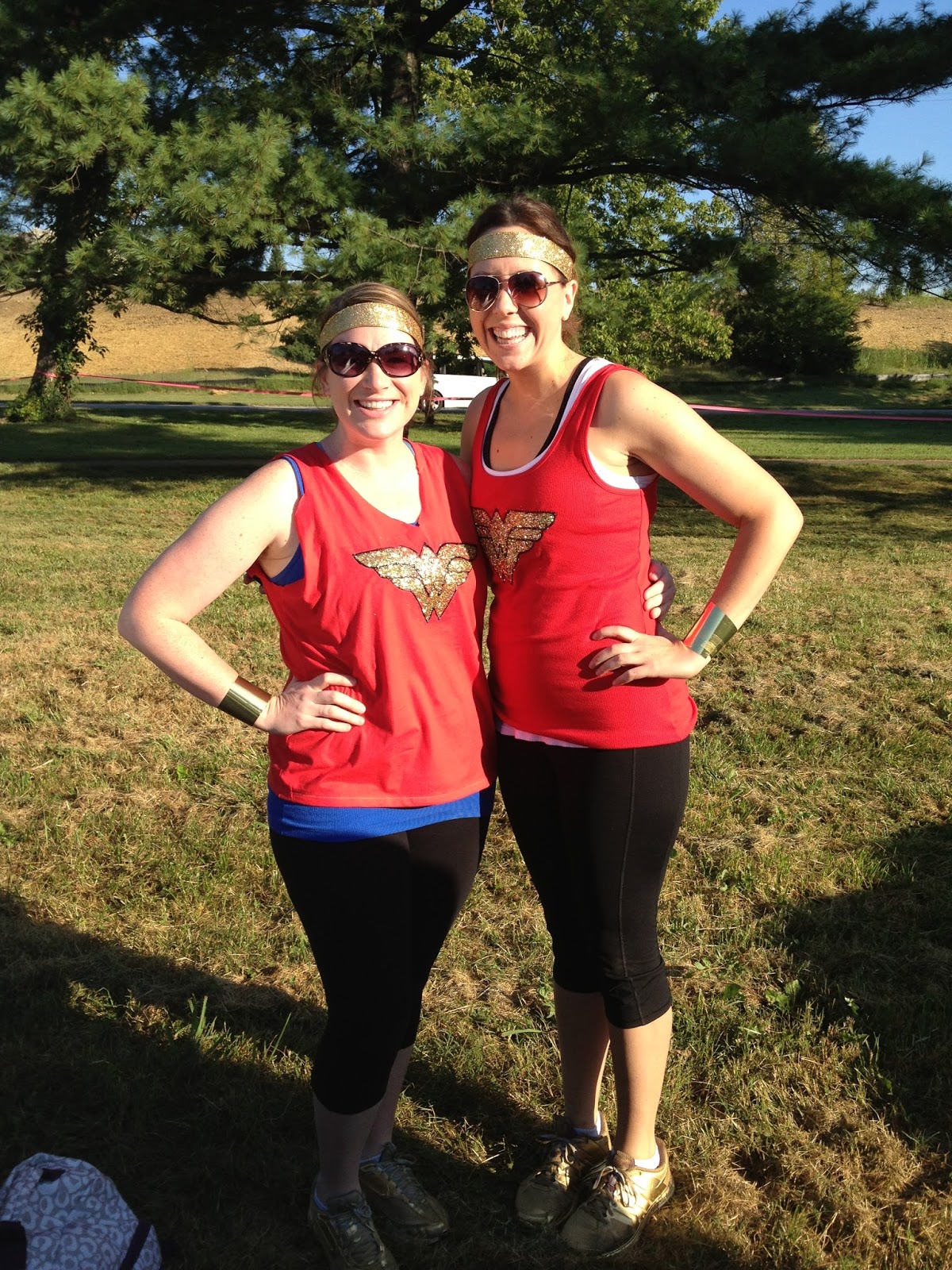 6. I am doing better at this running bit. I have run at least a few nights/ mornings a week and ran a 5K on Saturday with my friend Mindy and a group of girls. It was a run in Louisville called The Dirty Girl Run. It was a girls only mud run 5K to support breast cancer awareness. It was so much fun. Dirty, gross but challenging and fun! I would recommend it to any group of girls. We had a blast. I was a late addition to the team as someone got hurt and could not race. They had super cute outfits and a Wonder Woman theme and it was loads of laughs and fun with free beer at the end!