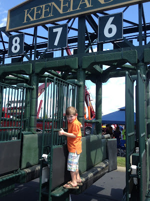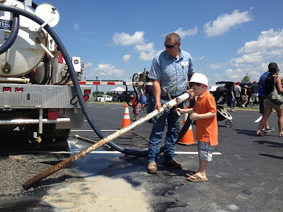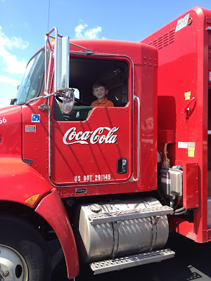 2. We went to one of the Snyder favorite spots this weekend- Keeneland. But there was no betting, no cute attire and no adult beverages. This trip was to an event called Touch A Truck. It was an event that Clark got a ticket to for his birthday from our friend Seth. He was very excited and we figured Shep would love it too. It is an event to support the Child Care Council and they have every sort of truck or large mode of transportation available to sit in, honk the horn and get up close and personal with. We had a great time but it was HOT. Seriously HOT. Like sweaty mess hot. Thank goodness for the juice box vendors, FREE ice cream from the Schwan's man and bottled water. The horns were loud, but I would call it a good day.