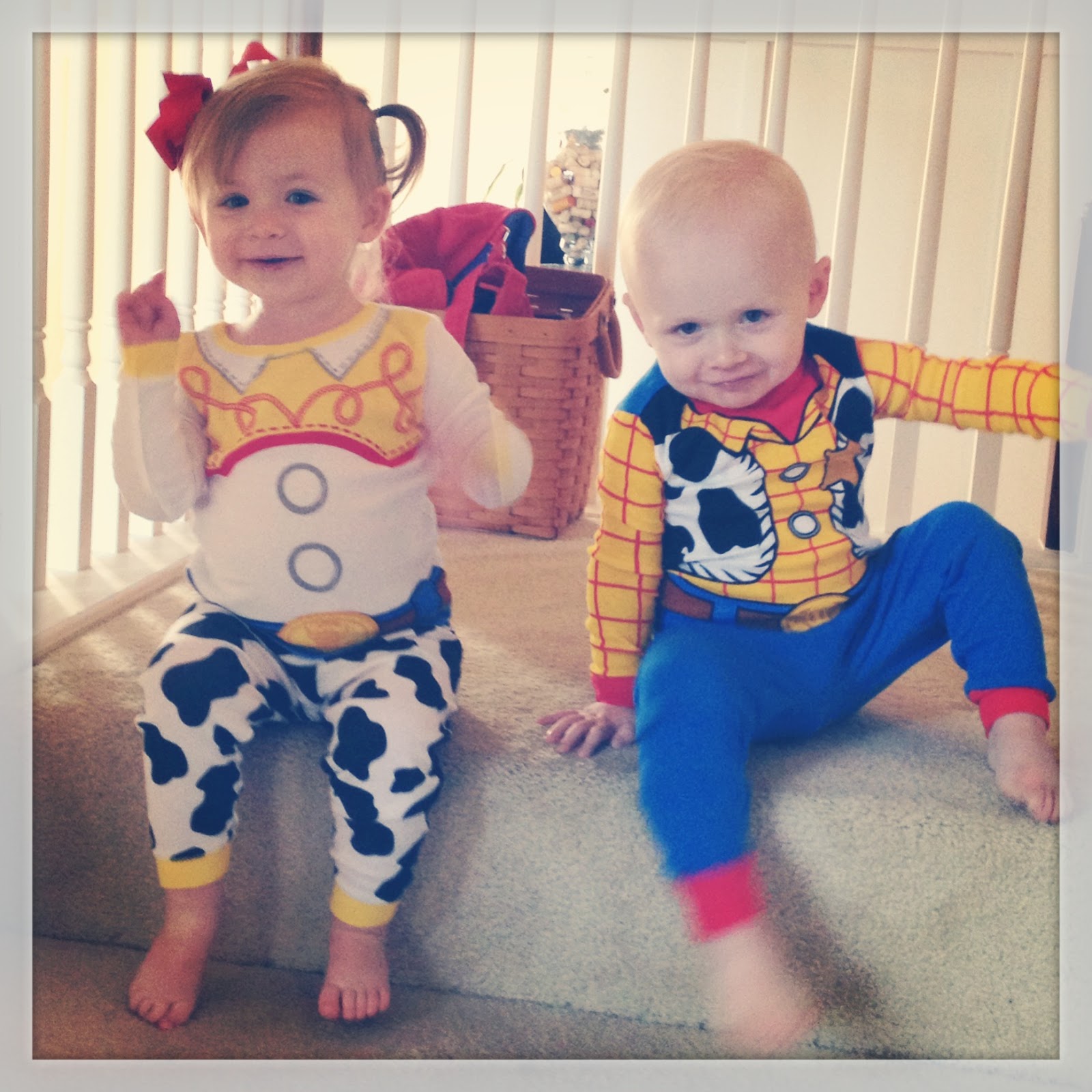 9. The duo wore some new jammies last night. They are Toy Story pjs that I got ages ago on super duper clearance and they are size 3T, but I decided last night was the night to break them out. They were beyond adorable and Shep was thrilled. He loves Woody. This picture was a huge hit on Facebook last night and I printed it today, framed it and put it on my desk because it makes me smile.